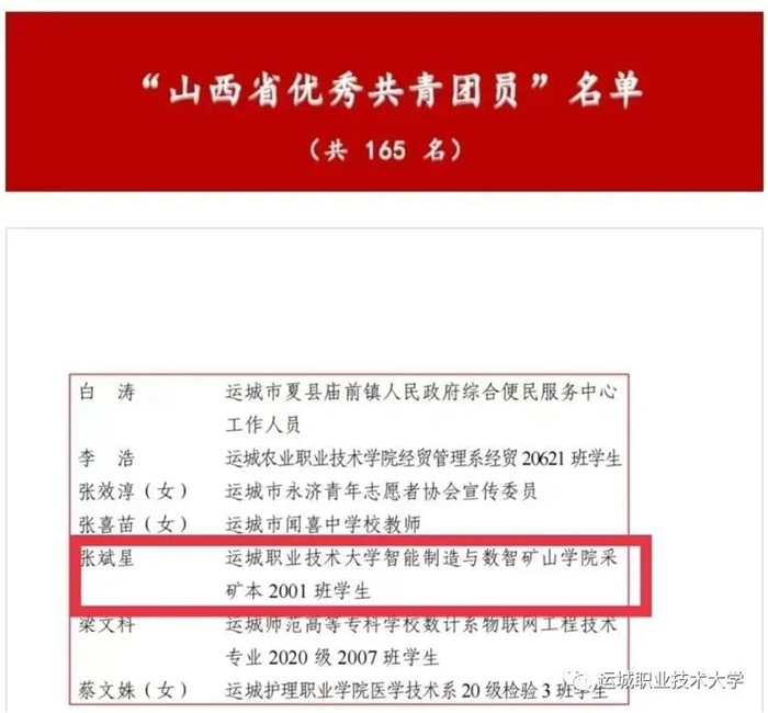 近日,山西省人力资源和社会保障厅、共青团山西省委、山西省青年联合会发布《关于“五四”评选表彰的决定》,纽约国际官网学生张斌星同学荣获第21届“山西省优秀共青团员”。